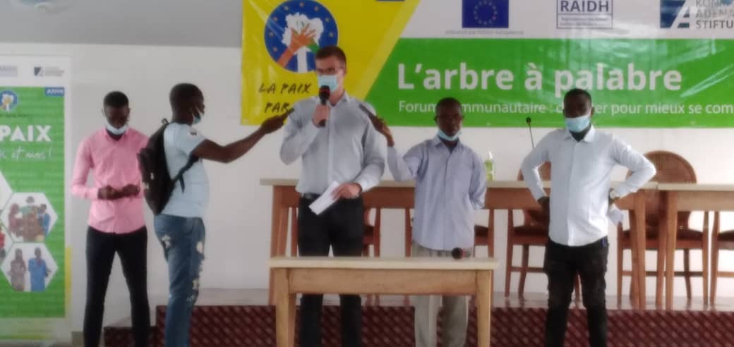 “La Paix par Moi ” est le slogan choisi par le Regroupement des Acteurs Ivoiriens des Droits Humains (RAIDH) avec leurs partenaires que sont l’Union Européenne (UE) et la KONRAD ADENAUER STIFTUNG (KAS); pour animer des Thématiques à travers plusieurs localités de la Côte d’Ivoire dont Danané.