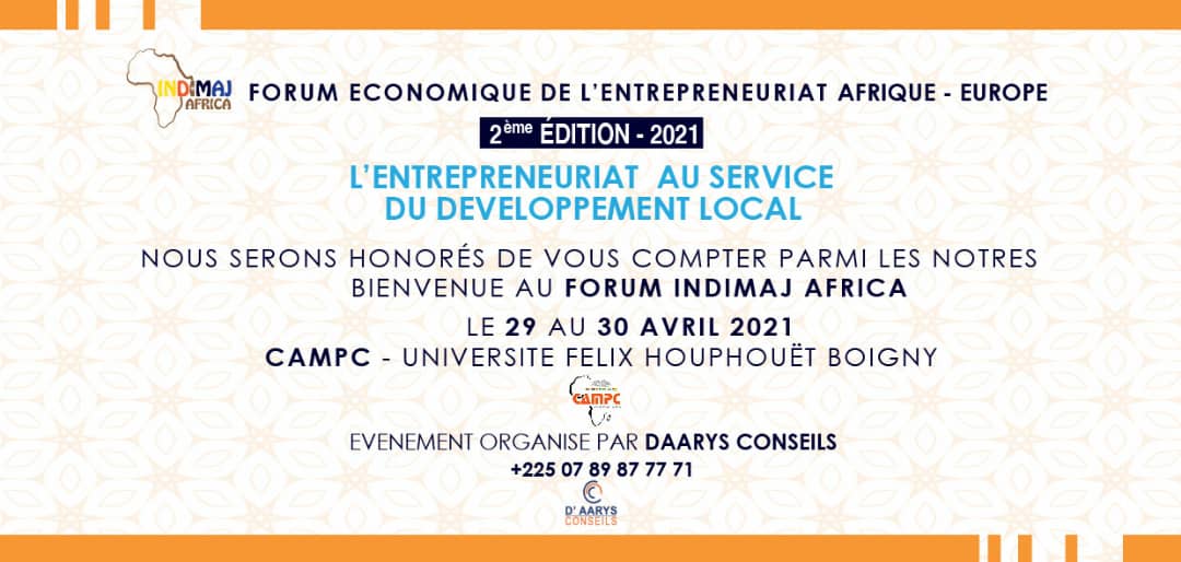 La deuxième édition du Forum Economique de l’Entrepreneuriat Afrique-Europe, dénommé FORUM INDIMAJ AFRICA, qui met à l’honneur les collectivités territoriales, portera sur le thème : « L’ENTREPRENEURIAT AU SERVICE DU DEVELOPPEMENT LOCAL ».