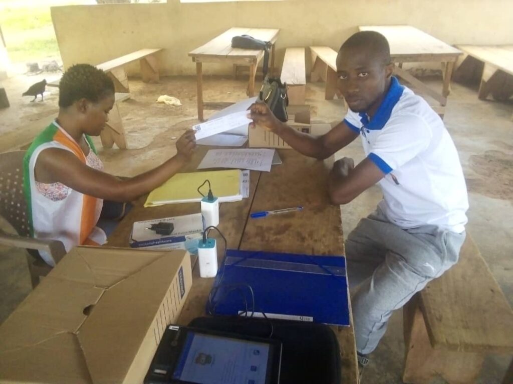 Très déterminé, UKK parcours la circonscription de Tie Ndiekro qui comptait aux dernières élections 5000 ELECTEURS DONT 3000 FEMMES ET 2000 HOMMES ET JEUNES pour donner un coup d’accélérateur à la révision de la liste électorale surtout à l’enrôlement des nouveaux majeurs ; des majeurs non inscrits et des parents pour la vérification de leur identité sur le listingue