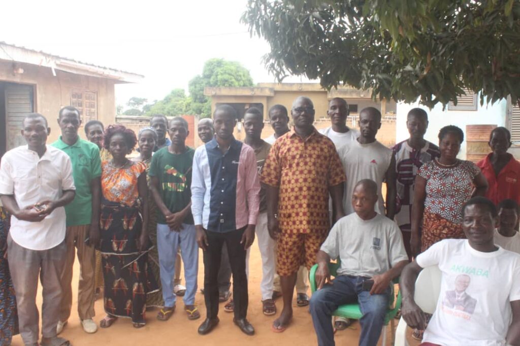 Dans cette approche la délégation de UKK parcours village après village pour informer et sensibiliser les parents et les jeunes de la circonscription de TIE NDIEKRO et Raviart DANS LA REGION DU BELIER
